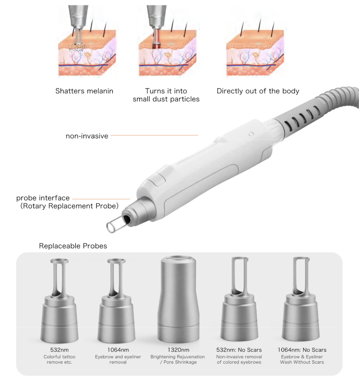 Picosekundový stroj na odstraňovanie tetovania ,pigmentov spôsobených slnkom či porušením kože,Hollywood carbon peeling a biorevitalizáciu pokožky ,je určený pre profesionálne salóny, kúpele a kliniky, ktoré hľadajú konečné riešenie bez pojazvenia a poškodenia pokožky . Tento stroj je navrhnutý s detekciou pokožky a vlasov poháňaných AI, vysokoenergetickým laserovým výstupom a pokročilou technológiou chladenia.